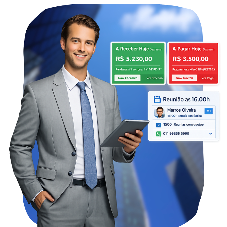 Comece pelo CRM. Ou pelo financeiro. Cresça com tudo integrado.