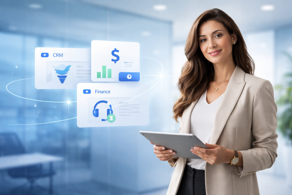 Nosso ecossistema foi desenhado para eliminar retrabalho, centralizar informações e garantir que dados fluam de forma automática entre plataformas financeiras, fiscais, de comunicação, vendas e atendimento. Isso significa mais controle, mais produtividade e menos dependência de processos manuais.