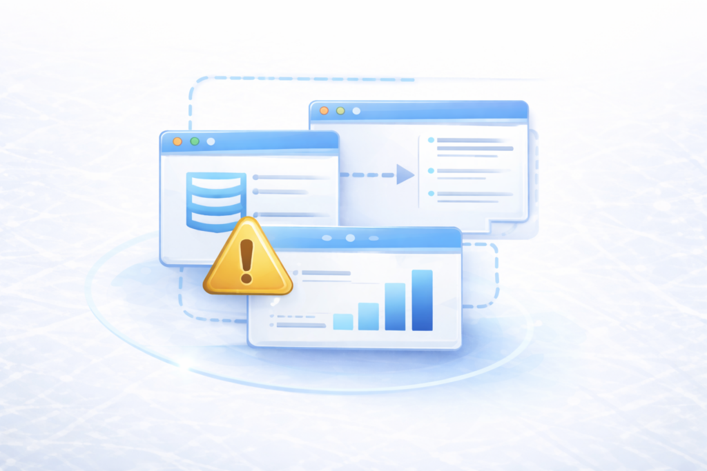 Informações fragmentadas gerando retrabalho constante.
